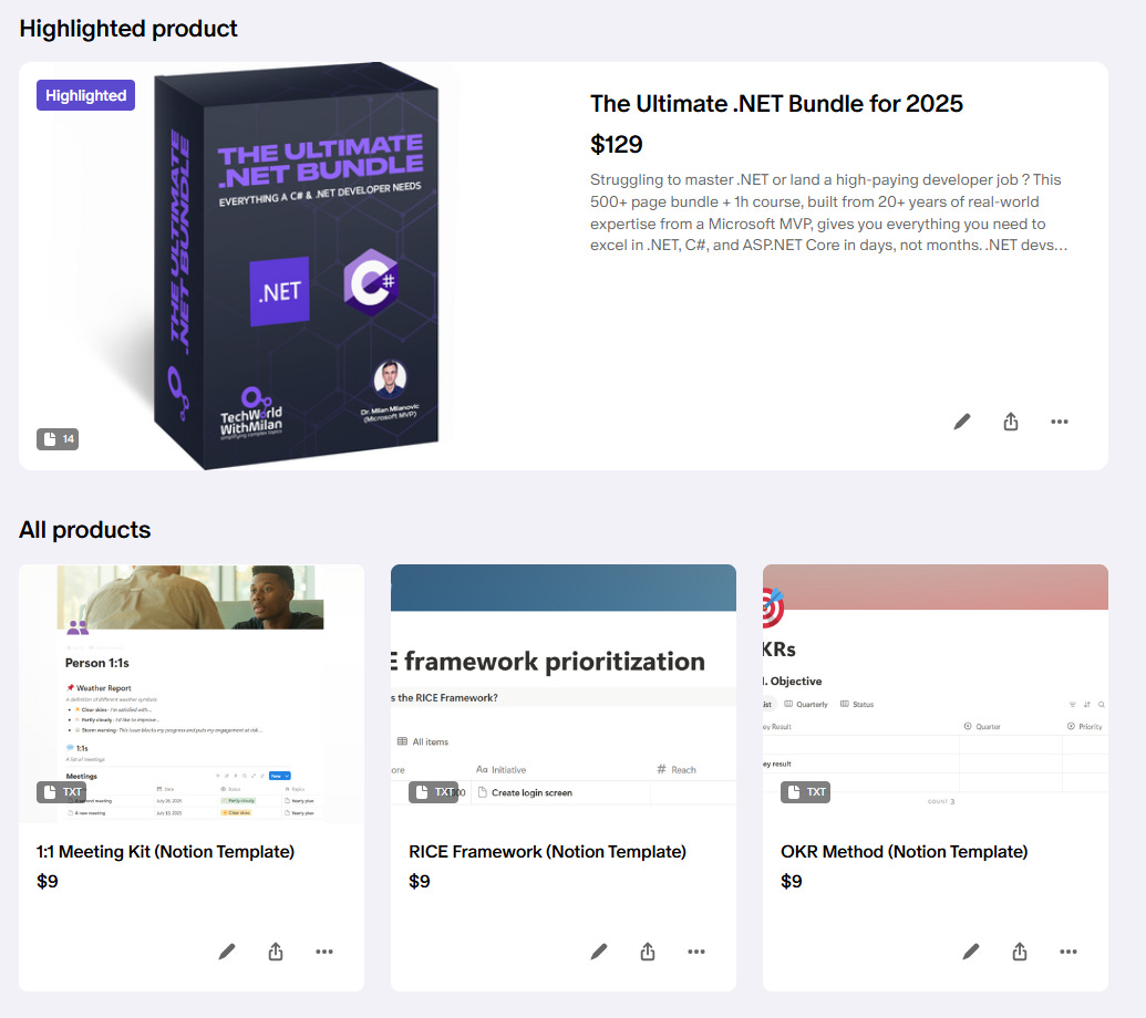 📚 The Ultimate .NET Bundle 2025 🆕. 500+ pages distilled from 30 real projects show you how to own modern C#, ASP.NET Core, patterns, and the whole .NET ecosystem. You also get 200+ interview Q&As, a C# cheat sheet, and bonus guides on middleware and best practices to improve your career and land new .NET roles. Join 1,000+ engineers.