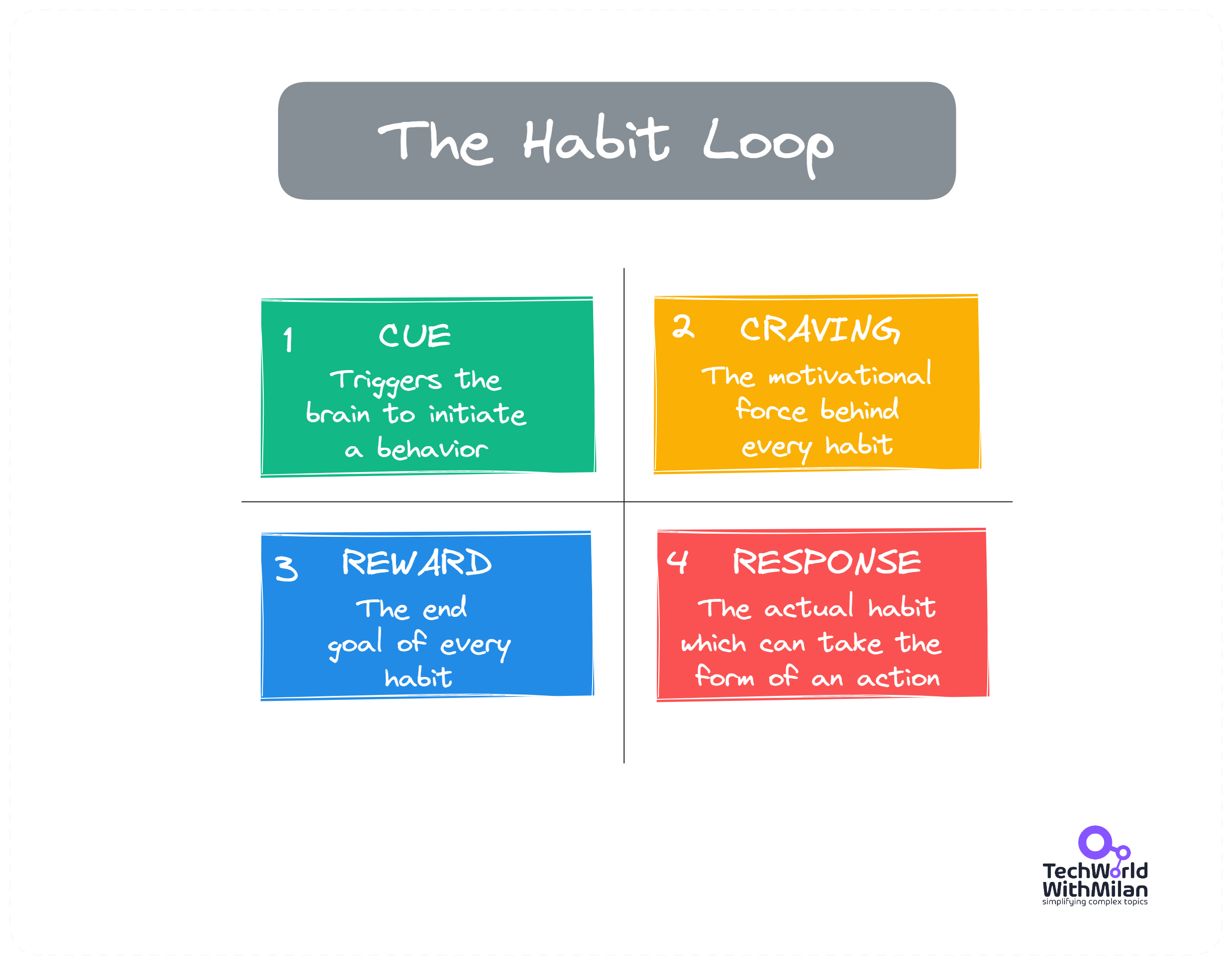 To use the habit loop effectively, design clear cues, like setting reminders or placing objects in plain sight, to trigger the behavior. Amplify your cravings by linking habits to positive emotions or desired outcomes, and simplify the response to make the habit easy to perform, starting with small steps. Finally, reinforce the loop with rewards, such as celebrating small wins, to encourage repetition and make the habit stick. Science says the habit is formed after 2 months of doing something (source).