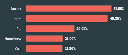 Since last year, Docker has risen from second place to the top-used other tool among all respondents (53%) this year. Those learning to code are more likely to use npm or pip (50% and 37%, respectively, vs. 26%) than Docker. Both are used alongside popular student languages (Python and JavaScript). Cargo is the most desired one.