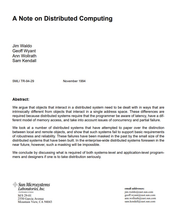 6. 📄 A note on Distributed Computing (1994), J. Waldo, G. Wyant, A. Wollrath, S. Kendall