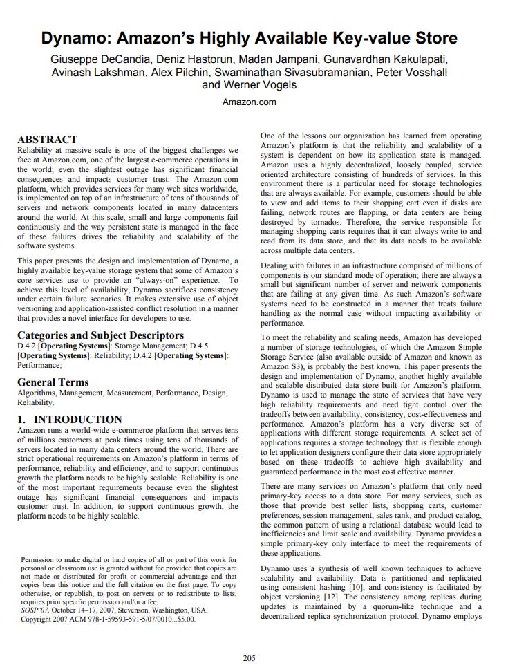 8. 📄 Dynamo: Amazon’s Highly Available Key-value Store (2007), G. DeCandia et al.