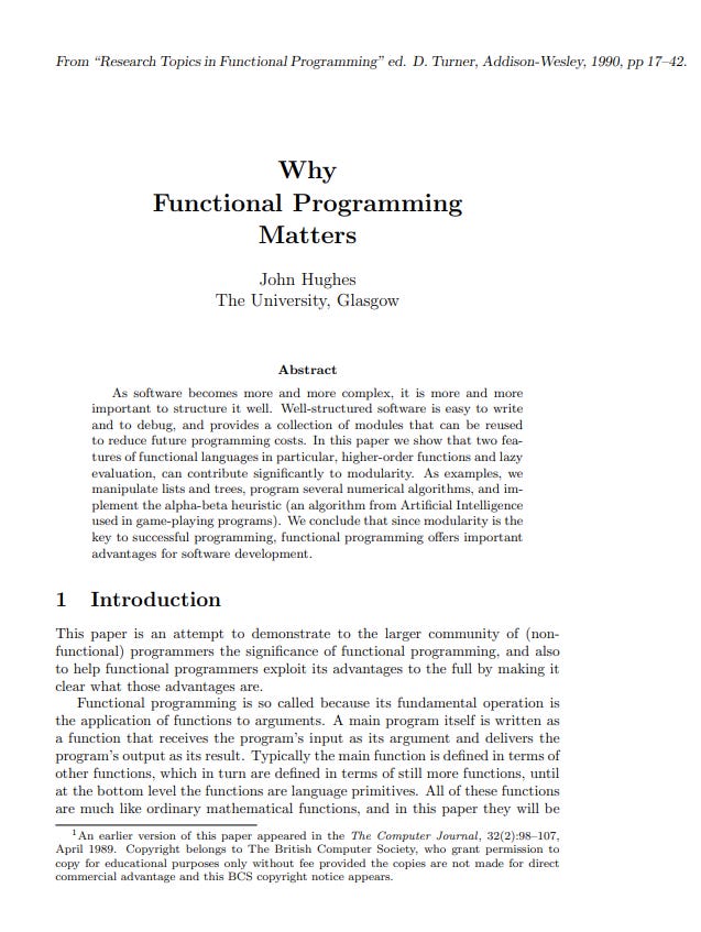 4. 📄 Why Functional Programming Matters (1990), J. Hughes