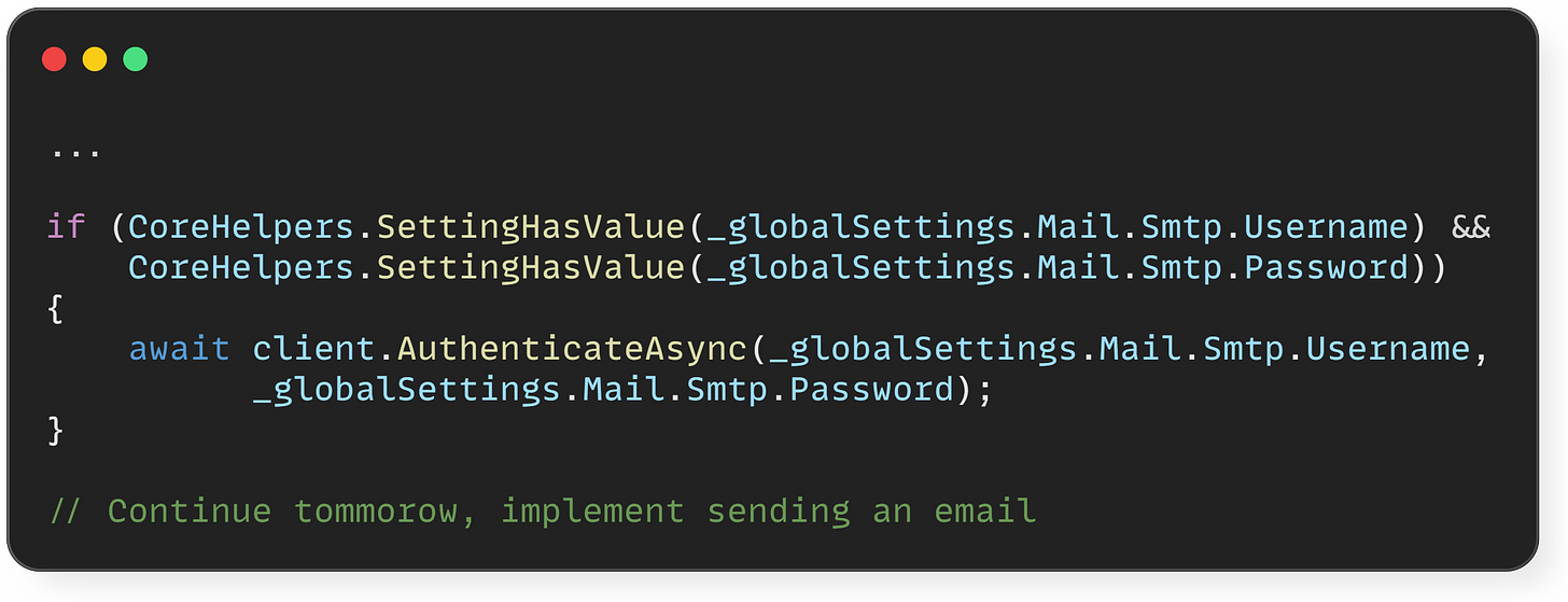 🚧 Interruptible workflow: As you work through complex problems, leave yourself breadcrumbs. If interrupted, a quick comment about why you made a particular decision in your source code file in the IDE can save hours of mental reconstruction. You can also do this at the end of the day, and tomorrow, you will immediately know how to start the work. This also helps us fight the Zeigarnik Effect (the tendency to occupy our working memory with unfinished tasks).