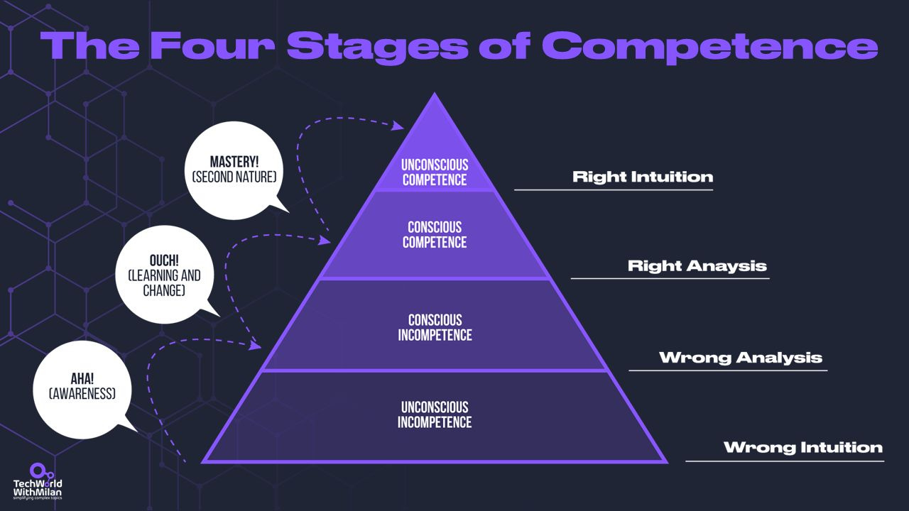 In the complex world of software engineering, the journey from beginner to expert is challenging. The "4 Stages of Competence" model, created by Noel Burch in the 1970s, is a great framework for understanding this journey. This model describes progressing from incompetence to competence in any skill people go through when learning and mastering a new subject.