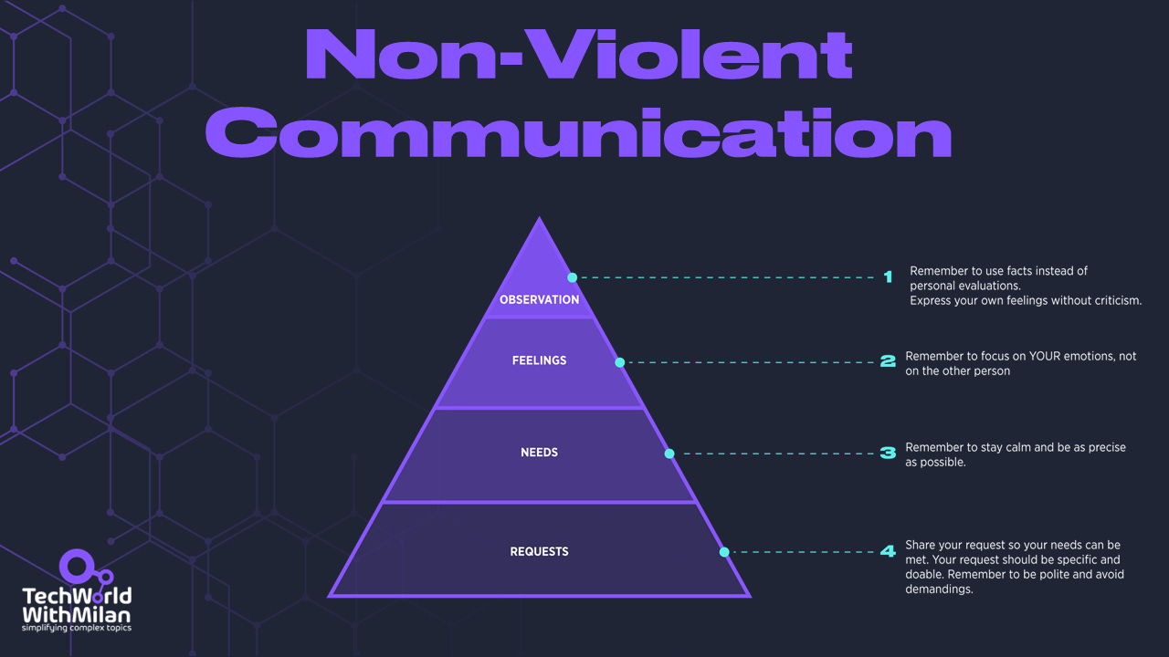 As a leader, you can use the non-violent Communication framework to resolve conflict, provide performance feedback, and make decisions. Practicing mindful communication, such as nonviolent communication, in all aspects of your life can significantly impact how you present yourself while learning to understand the world and its people.