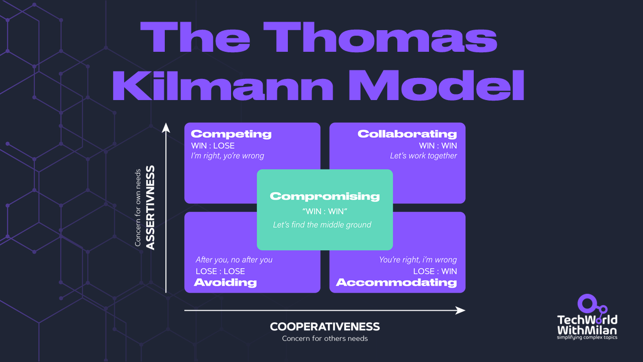 ⚖️ Compromising (Moderate Assertiveness and Cooperativeness). This mode is the middle ground, balancing assertiveness and cooperativeness. It aims for solutions that offer partial satisfaction to all involved.
