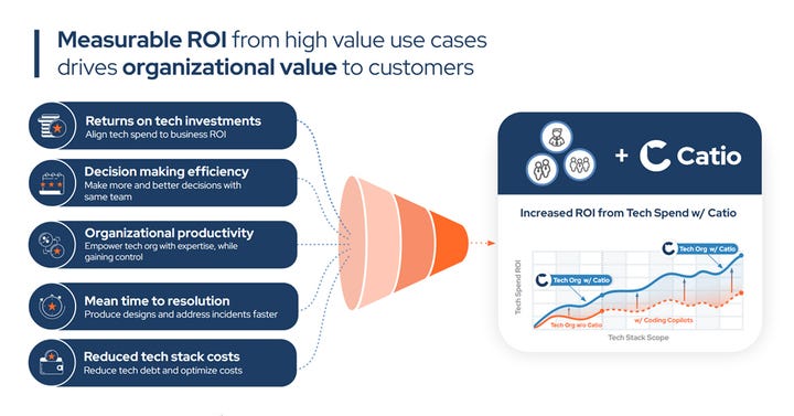 Empower your tech organization to make faster, smarter decisions with Catio. From CTOs crafting higher-ROI strategies to architects designing optimized architectures and engineers delivering high-impact module designs, Catio scales expertise and drives unparalleled productivity throughout your tech org. Using architecture observability for superior decision-making insights and 24/7 expert advice on every aspect of your tech stack, teams use Catio to avoid costly sprawl, plan high-impact architectures, and achieve exceptional organizational efficiency. With Catio, shorten decision times and deliver measurable ROI improvements across your tech stack.
