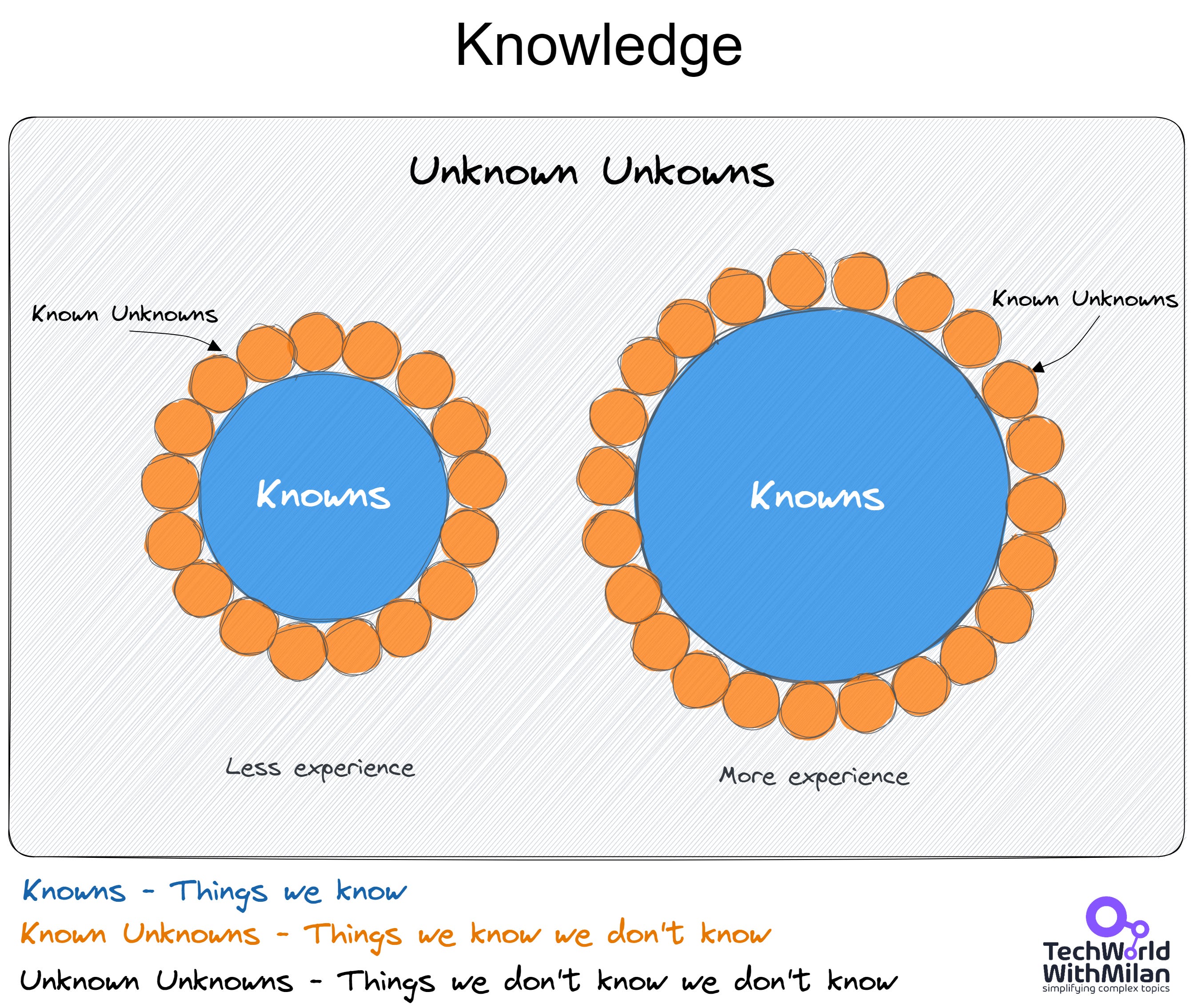 Yet, we tend to overestimate the extent of our knowledge, especially when we are beginners in something, as described by the Dunning-Kruger effect above. The effect can be compared to a metaphor of an expanding circle, where our knowledge is inside the process, while everything we don't know is outside. Yet, as our contact with things we don't yet know increases, we discover more and more things there. As our experience expands, the more things you know, the more you know that you don't know.