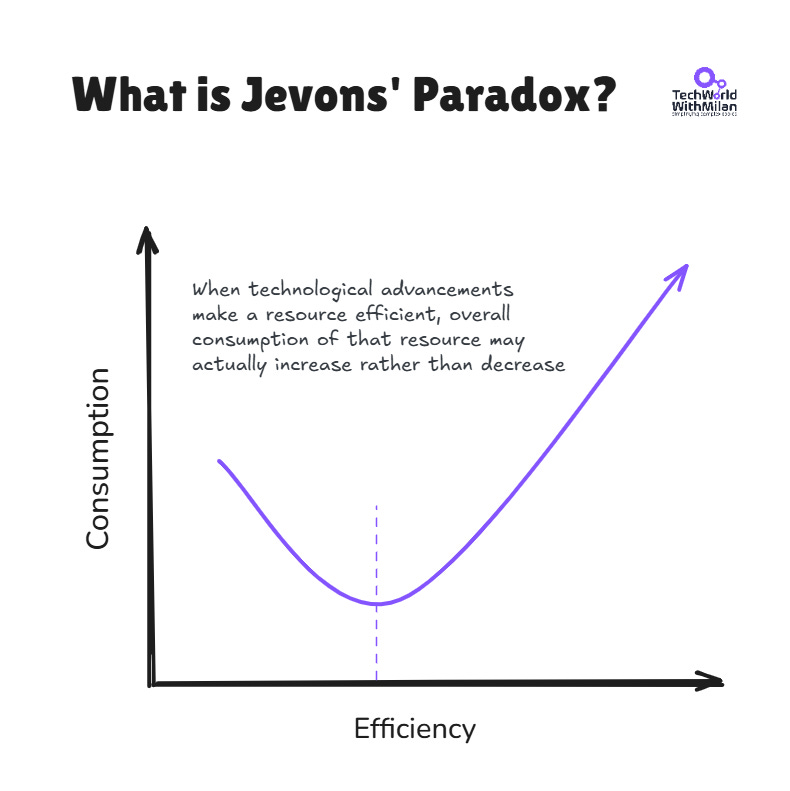 This is well explained by the Jevons Paradox. In 1865, economist William Jevons had observed something interesting: as steam engines became more efficient at burning coal, coal consumption went up, not down. Why? Efficiency unlocked new use cases. Suddenly, coal made economic sense for industries that had been unable to afford it before.