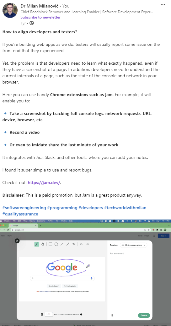 Dedicated LinkedIn and Twitter posts about your product. I explain what I like and how it helps engineers, architects, and managers.