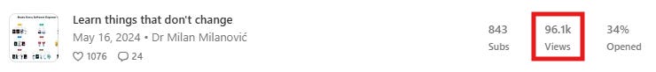 ℹ️ Note: Some texts have many more readers than my subscribers, because many people read them when I announce on social networks, but don’t subscribe. For example, this text had 96k views, which was double the number of my subscribers.
