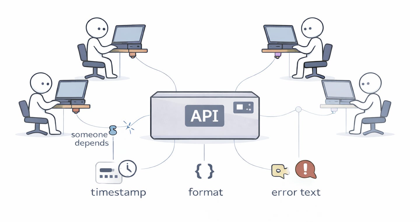 With enough users, every observable behavior of your API becomes someone’s dependency, no matter what the contract says.