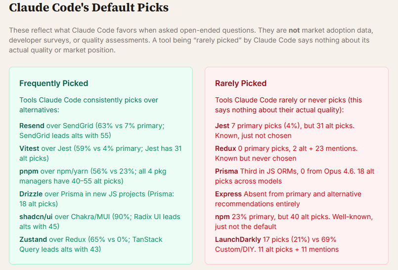 Researchers from Amplifying sent 2,430 open-ended prompts to Claude Code across 3 models, 4 project types, and 20 categories. In those prompts, they did not mention any tools, but just asked, "What should I use?" The results were interesting and important to understand.