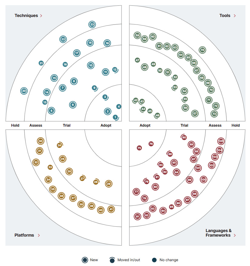 The report includes, as usual, trends graph categorizing technologies based on their adoption stages: