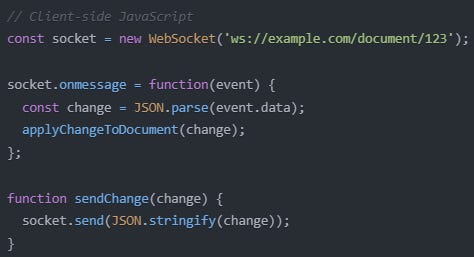 ➡️ An example of its usage is a real-time collaborative document editing application that might use WebSockets to synchronize changes between multiple users instantly.