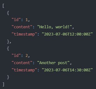 ➡️ An example of this format's usage could be a social media platform that uses a RESTful API to allow third-party applications to retrieve user posts.