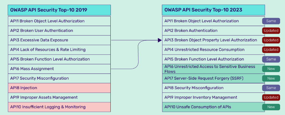 The new list, released in 2023, shows different types of auth flaws and new risks around business logic flows. Namely, they added three new risks: