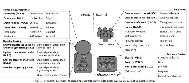 In a research paper from 2015. [2][3], the same group of researchers from Microsoft and the University of Washington asked 59 experienced engineers what makes engineers and great software engineers.