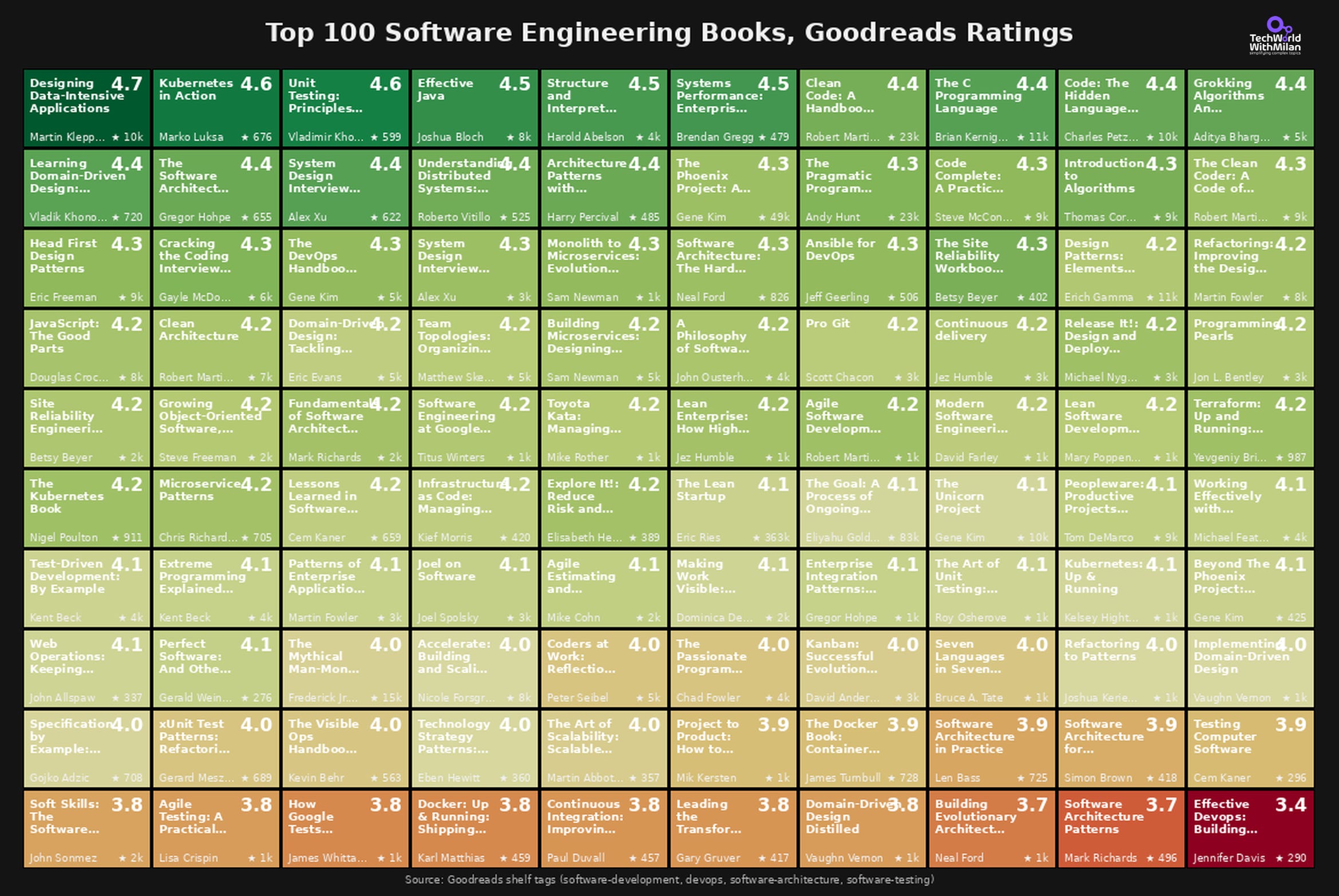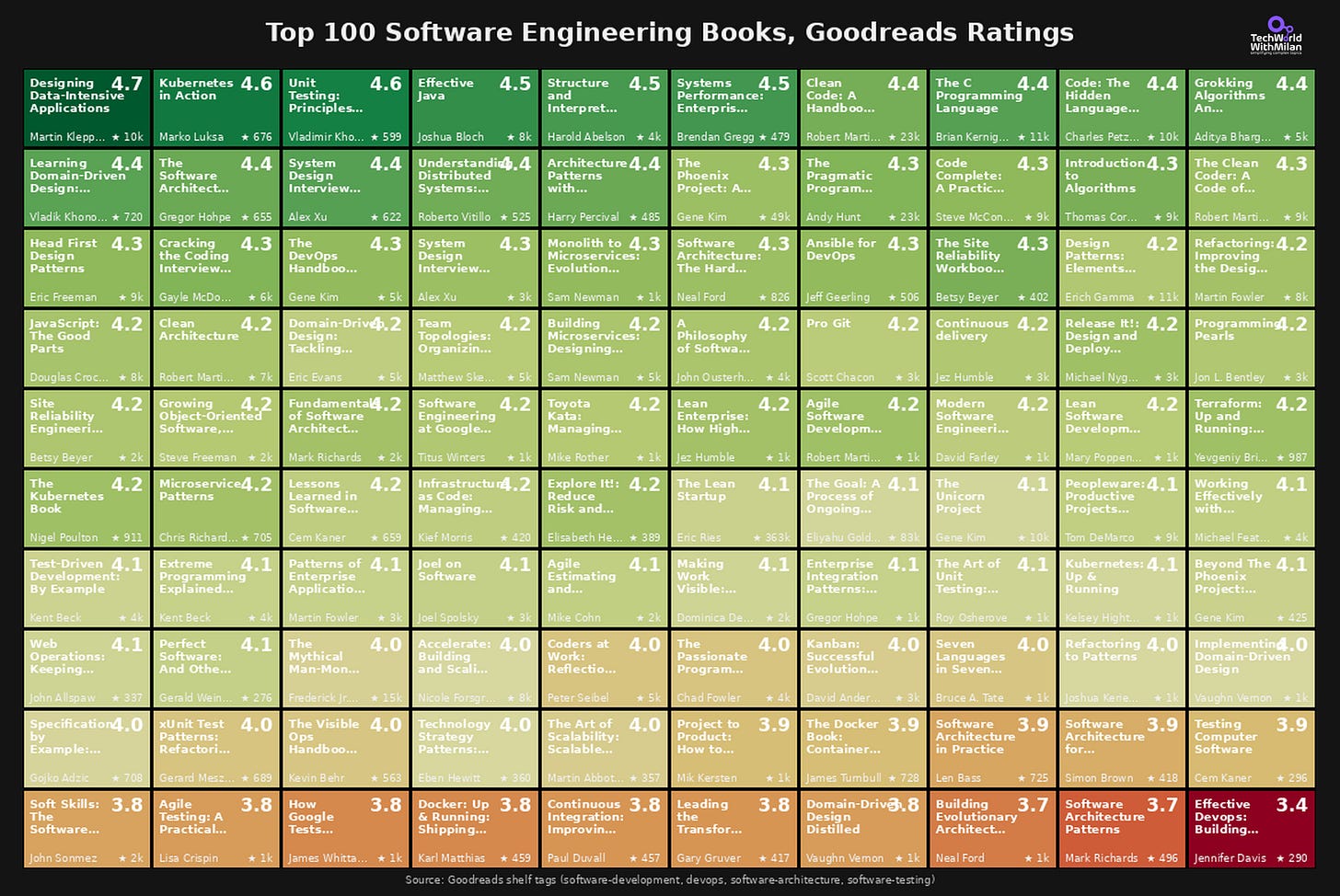 I analyzed the top 100 software engineering books on Goodreads, and here are the results.
