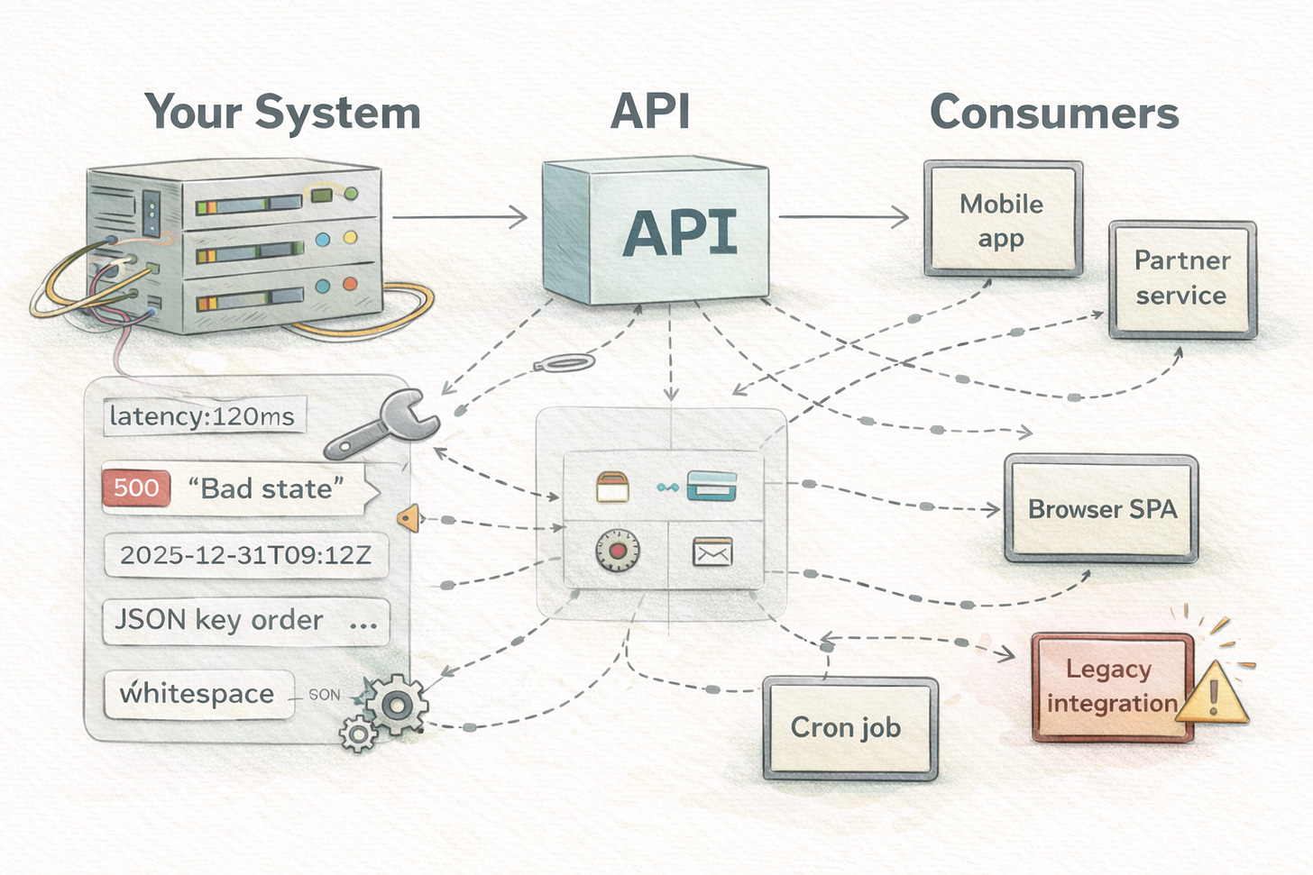 Hyrum’s Law and the Beyoncé Rule. Every observable behavior of your system becomes someone’s dependency, whether you documented it or not. The fix? Test everything you care about, or don’t complain when it breaks.