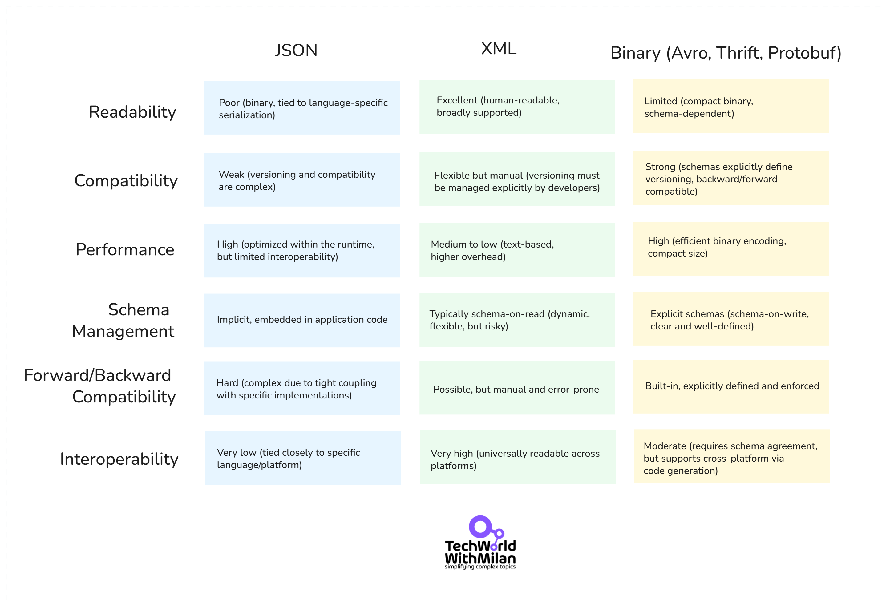 the comparison are wrong, you are saying json is not readable while binary are ... please fix it