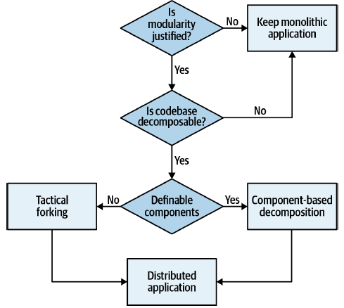 Component-based decomposition (if monolith is modular): It applies different refactoring patterns for extracting components to form an incrementally distributed architecture. A component is a well-defined application block with a clear responsibility (e.g., in a namespace or directory). The process involves identifying and sizing components, over-gathering common domain components, and flattening them to create component domains and services. An essential element here is sizing components, and it’s done by calculating the total number of statements with a given component—the ideal size of 1 to 2 standard deviations from the average component size.