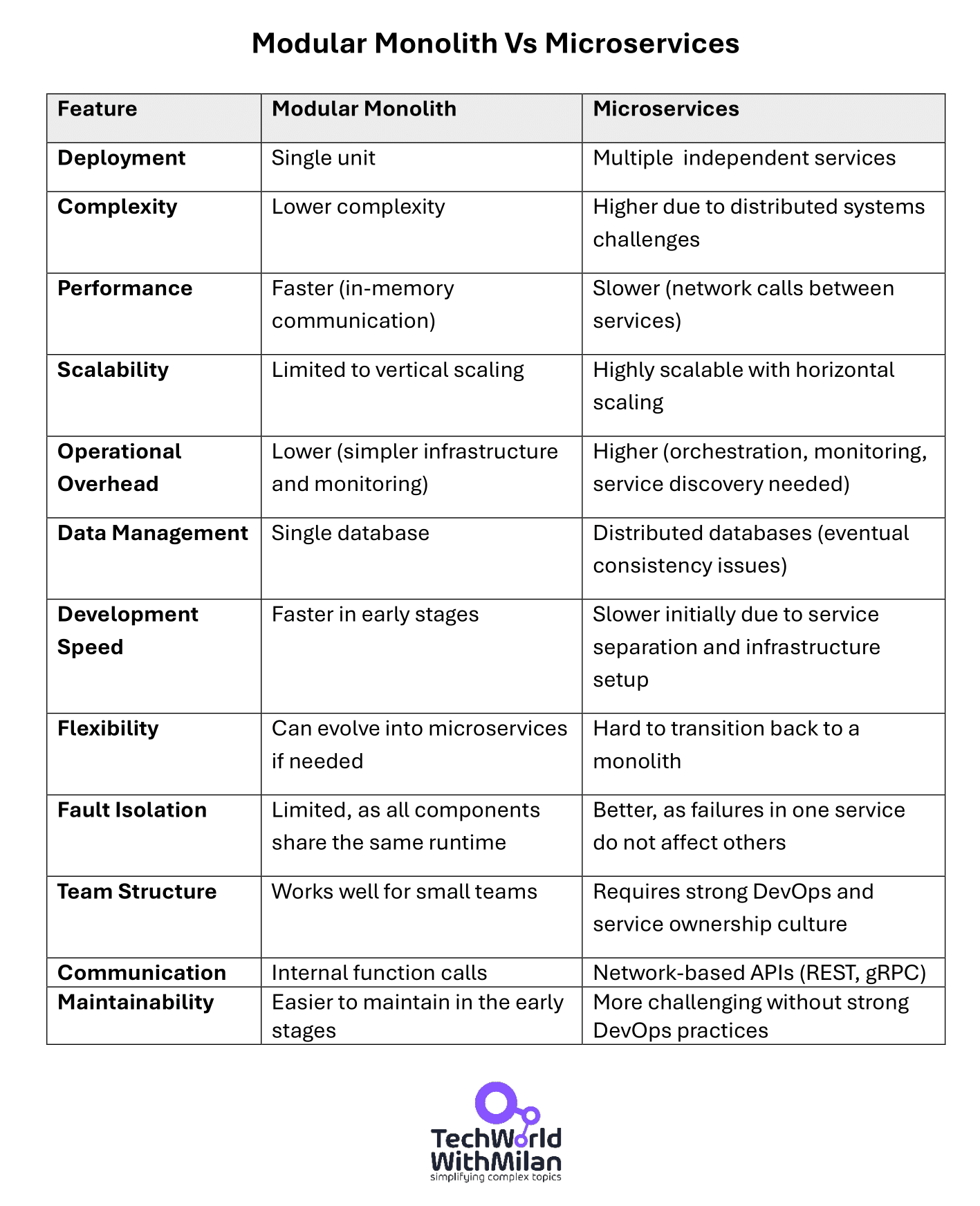 ❌ Growing complexity – Without discipline, modular monoliths can degrade into tightly coupled systems over time.