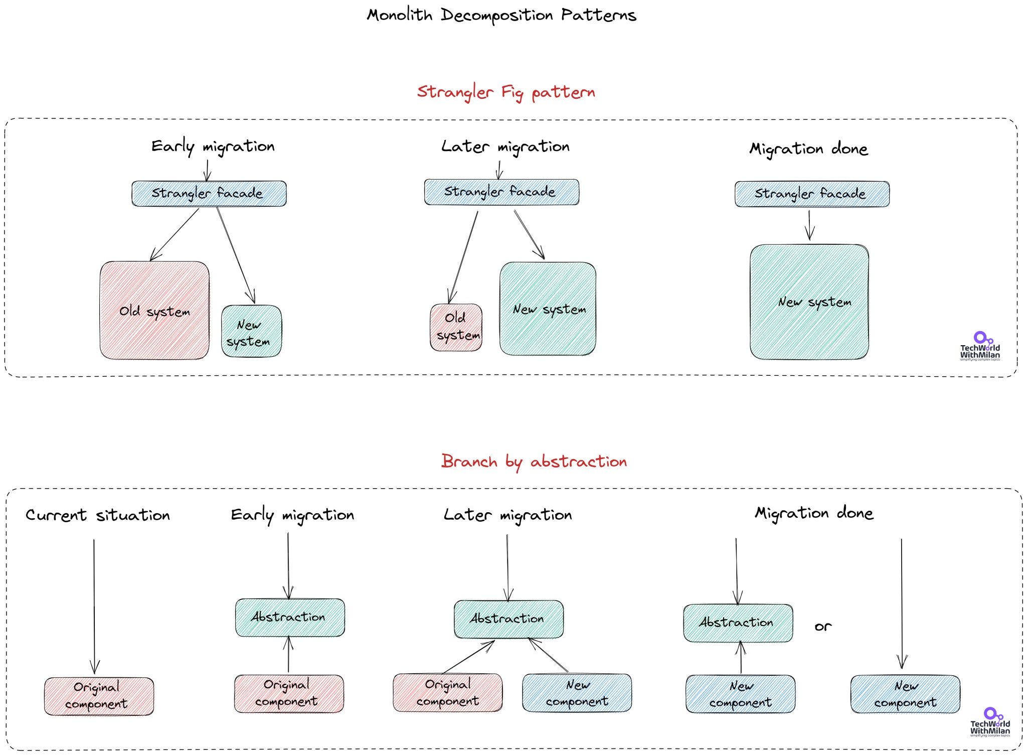 If we are stuck with traditional or distributed monoliths, we need to do some monolith decomposition. There are a few approaches that can help here: