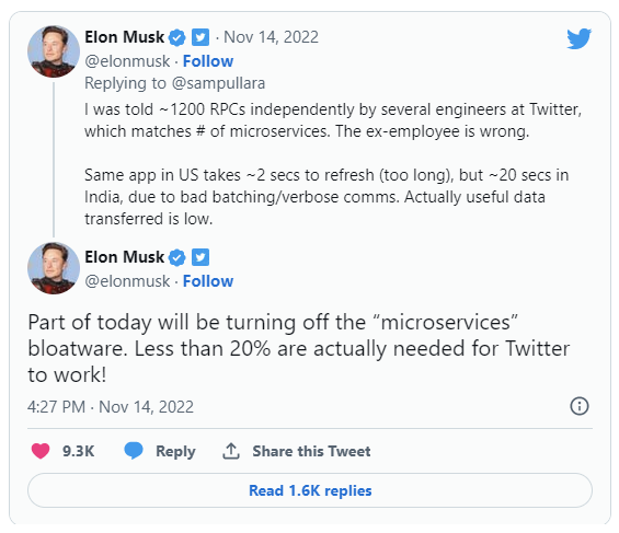 With the microservice approach, we have a few disadvantages, too. The system is becoming complex in terms of maintaining and diagnosing issues (logging and tracing). This is very important when dealing with microservices. Yet, we also saw something called “microservice bloatware,” even on Twitter: